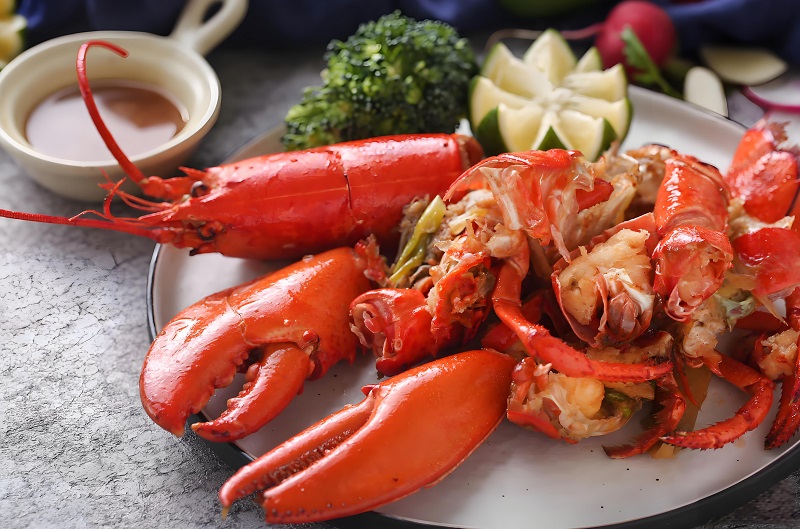 有别于其它种类的龙虾,波士顿龙虾有两个硕大、肉质丰厚的前螯,其重量约占龙虾体重的15%。第一步足为一对大螯,一侧的螯稍大于另一侧,体表光滑,触角较细,以鱼类、其他小型甲壳类及贝类为食。