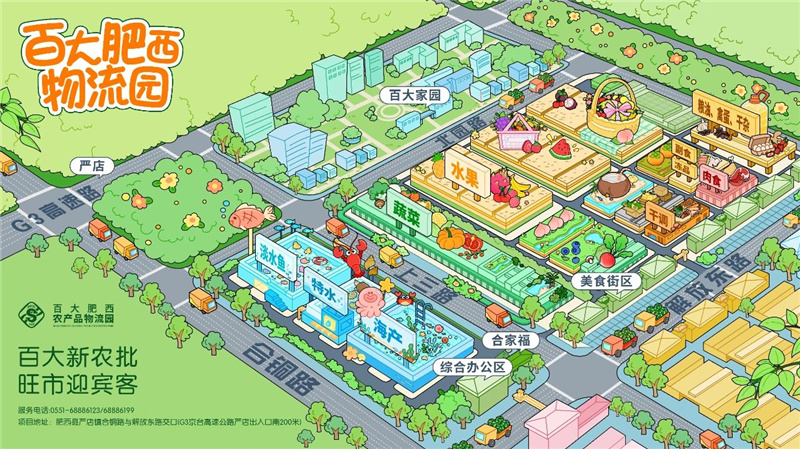 百大肥西农产品物流园由合肥百货大楼集团股份有限公司全额投资建设,该项目是市、县重大“菜篮子”民生工程、合肥国家骨干冷链物流基地重点建设项目、安徽省重点建设项目。