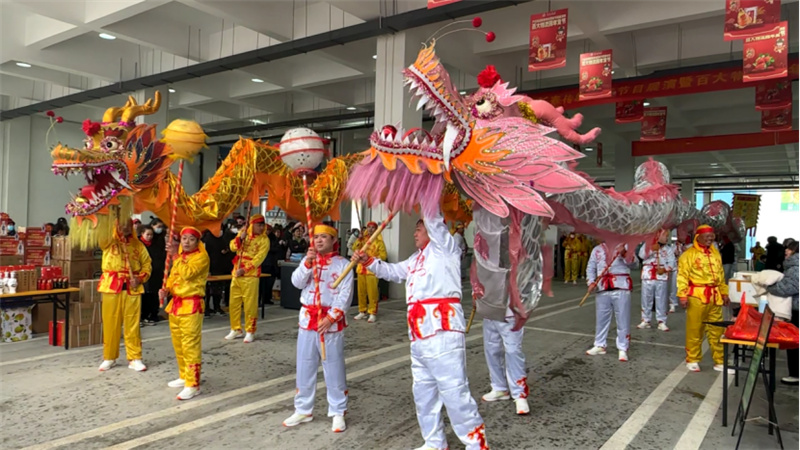 2月2日下午,严店镇政府迎新春传统民俗节目展演在年货节活动现场隆重登场,舞狮、舞狮、旱船等传统民俗技艺表演喜迎新春佳节,吸引了众多居民及顾客参与,一同感受这浓浓的传统中国年味。游、穿、腾、跃、翻、滚、戏、缠……舞龙队身着盛装,在喜庆的锣鼓声中脚步轻盈欢快,金龙在舞龙队的挥舞下摆出“金龙”摆尾、龙身弯绕、龙头昂扬等多种造型,营造了浓厚的节日氛围。舞龙舞出了新花样、新气象,展示着严店年俗文化的魅力。