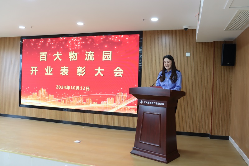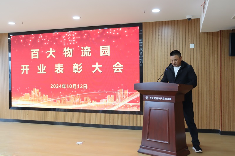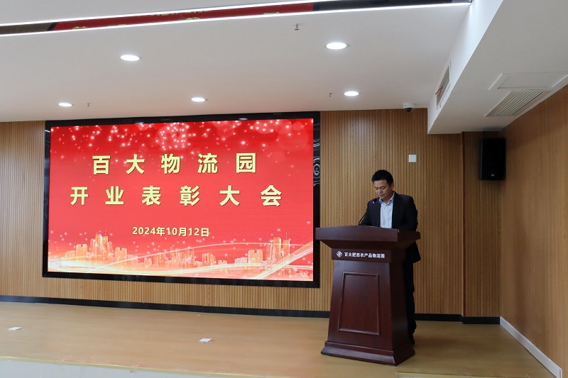 2024年10月12日上午,百大物流园公司举办开业表彰活动,公司领导班子成员、干部员工代表、经营户及采购商代表共80人参加活动。