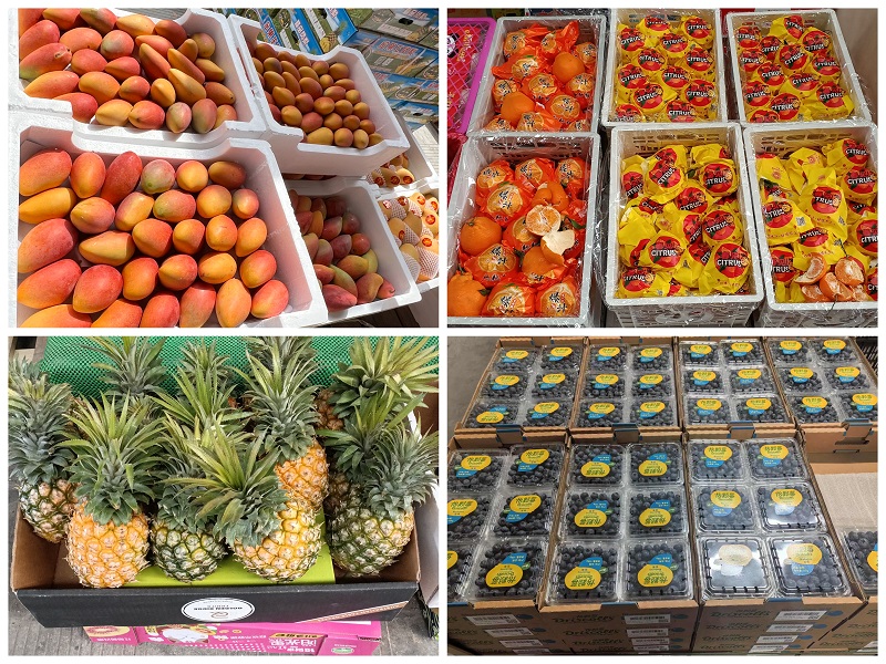 从近一周交易数据来看,水果市场日均交易量1500吨。目前,凤梨、菠萝、耙耙柑、哈密瓜仍是当仁不让的主角,水仙芒、千禧、羊角蜜等时令水果,得益于价格上的优势,也占据了市场极大份额。特别是酸甜可口的蓝莓,交易量同比飙升164.86%,均价33元/斤,同比下降20%。此外,国产樱桃、菠萝蜜、椰青、泰国金枕榴莲、圣女果等品种价格同比均有下降,交易量增加。