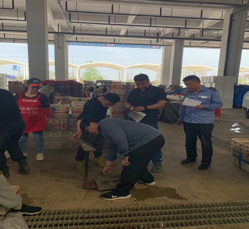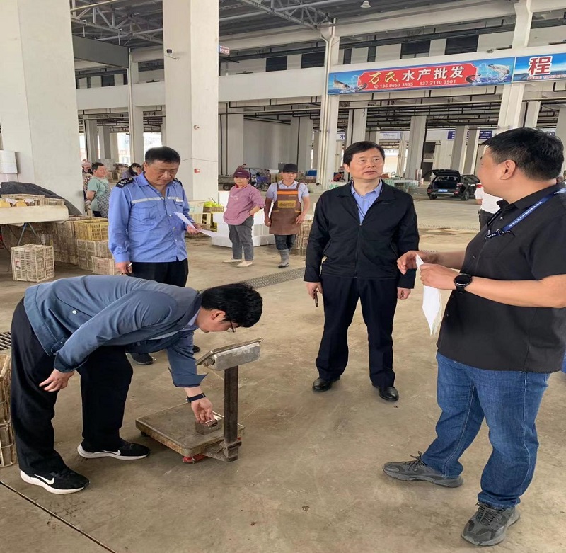 为进一步规范市场计量行为,保障交易公平,维护消费者合法权益,行政支部邀请肥西县市场监督管理局检验所所长陈育带队,对园区内水果、水产、综合、蔬菜等交易区的计量器具上门检定服务。