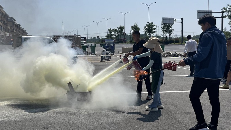在专业消防员的指导下,参训人员分组进行了灭火器的实操演练,按照“提、拔、握、压”四步法,对准模拟火源精准喷射,迅速扑灭明火。“第一次亲手操作灭火器,才发现细节决定成败。这样的培训很实用!”演练结束后,参训人员纷纷感慨,表示收获满满。