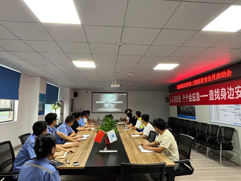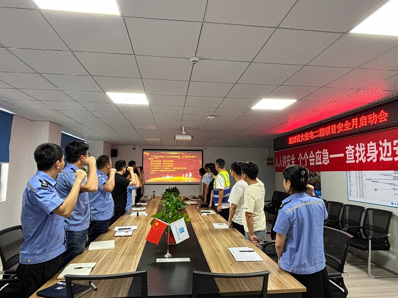 集体宣誓表决心。在施工单位安全总监带领下,全体人员庄严宣誓:“严守安全规程,履行安全职责,查找身边隐患,守护生命红线!”,誓言铿锵有力,展现了全体人员共筑安全防线的坚定决心。