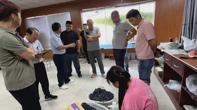 随后,与会人员一同前往“鲜来鲜得”葡萄园进行实地考察,种植户与经营户代表围绕葡萄的品质把控、包装设计以及运输环节等关键问题展开了深入细致的洽谈,为后续的深度合作奠定了坚实基础。