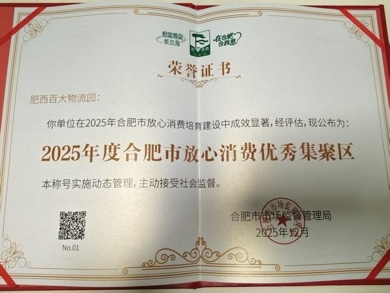 合肥百大周谷堆肥西园区获评 “2025年度合肥市放心消费优秀聚集区”