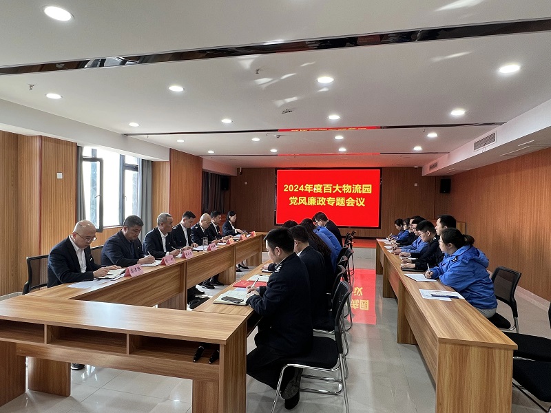 2024年4月18日上午,百大物流园在六楼会议室召开2023年度支部书记抓基层党建述职评议暨党风廉政工作会议,公司领导班子成员、各支部书记、党员干部代表共30余人参会,党委副书记、总经理席贻勇主持会议。